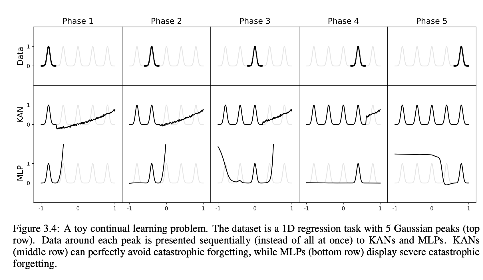 하지만,,, 저렇게 생긴 synthetic 1D regression dataset에 MLP를 많이 해본 사람은 느끼겠지만 저런 형태의 함수를 fitting 시키기가 몹시 어렵다. sin-curve에 대해 fitting 시키고, 조금만 옆으로 넘어가면 extrapolation이 전혀 되지 않는 것을 관찰할 수 있다. KAN에서도 이것이 완벽하게 해소된 것으로 보이지는 않지만. (MLP가 piecewise linear 하다는 한계 때문일까)