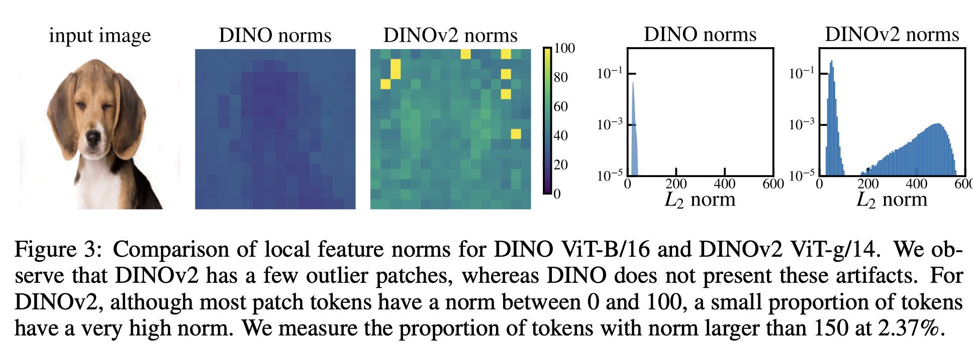 - 위 figure-3에서의 결과처럼, high norm and outlier patches이다. outlier 하다는 것은, 특별히 이미지의 sementics에 별 영향을 주지 않는 어떤 patch라는 소리이다 (위 그림의 white-background처럼)