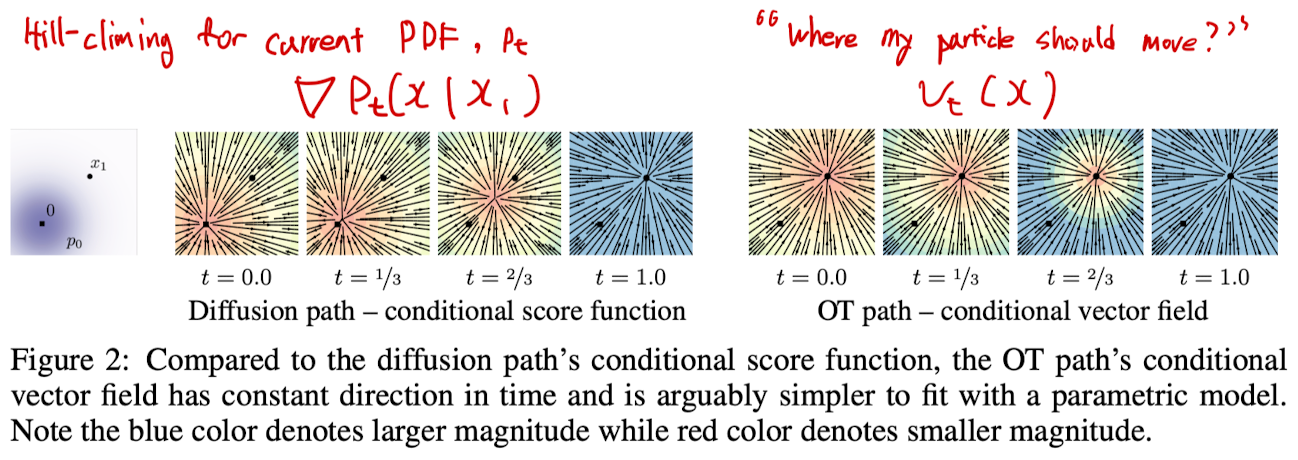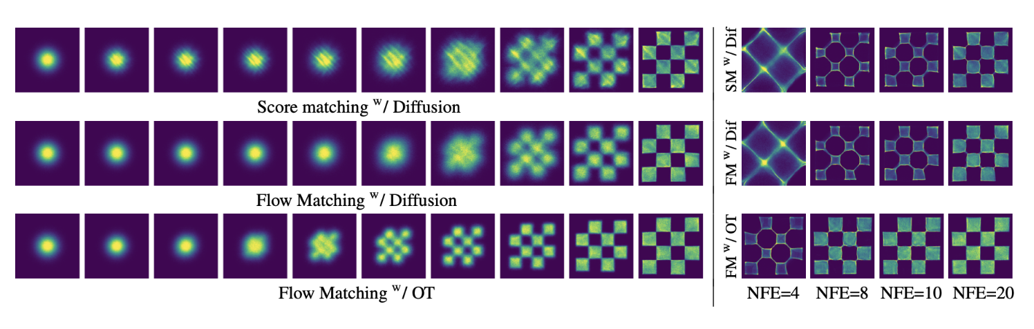 - 위 문제들을 해결하면, 결론적으로 diffusion 보다 더 좋은 sampling path를 얻는다. 샘플링 과정에서 inference 횟수가 더 적어지고, 학습도 더 빨라진다.